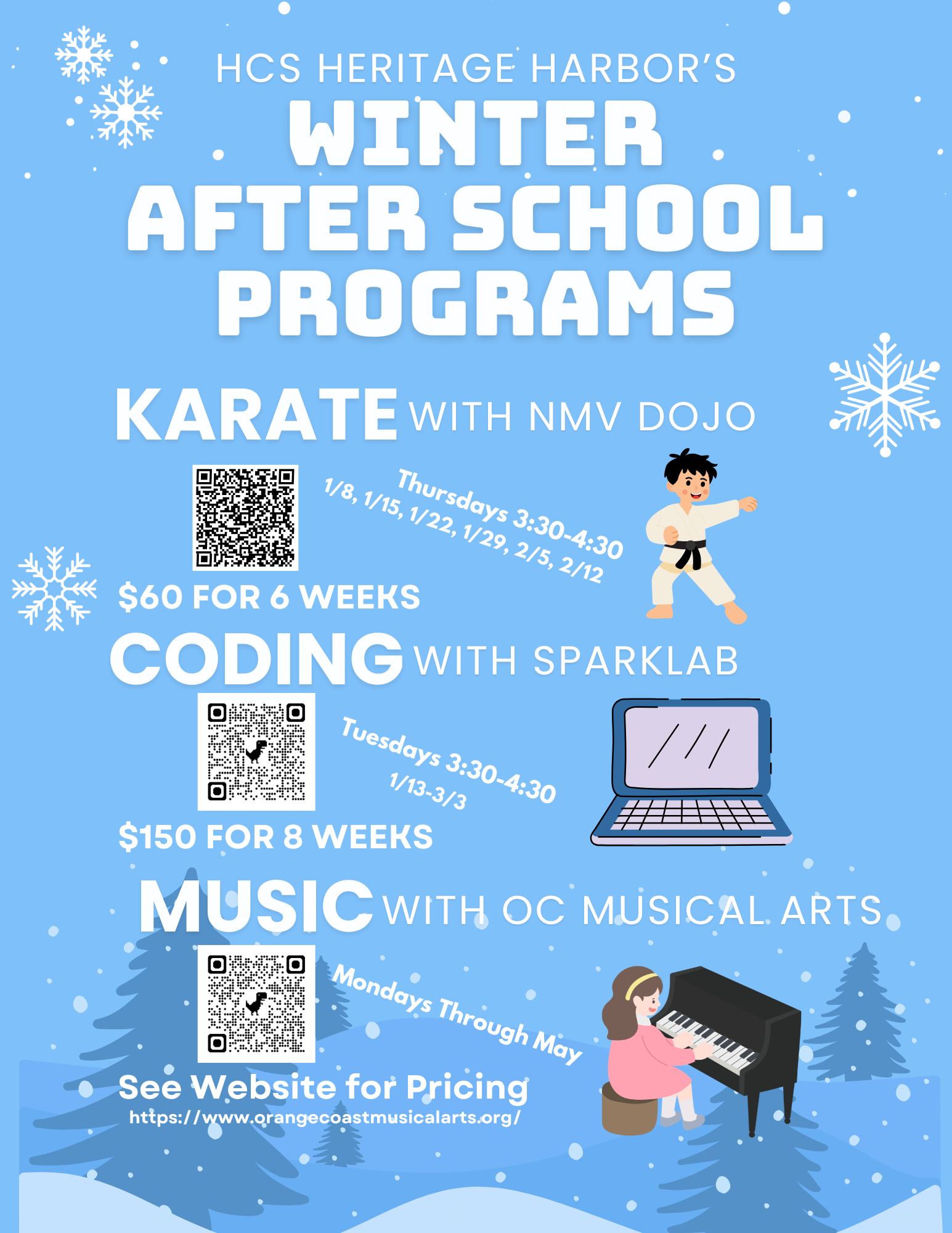Heritage Harbor is a warm, faith-centered before and after-school program serving Kindergarten through 6th grade, open daily from 7:00 a.m. to 5:30 p.m. Each day begins by digging into God’s Word through a meaningful devotional, followed by free time to start the morning well. In the afternoon, children enjoy a fun snack bar (for those who bring money), extended recess with games and outdoor play, and a minimum of 20 minutes dedicated to homework. Students then relax and connect through free time with table games, board games, crafts, and creative activities. Our loving, multi-generational staff—made up of moms, college students, Heritage Christian School graduates, and high school students—intentionally disciple children at every level, helping them build strong character and lifelong bonds. In addition, seasonal extracurricular activities are available for an additional cost, and in the past have included offerings such as Karate, Coding, LEGO® Brain Builders, Dance, and even Etiquette, providing enriching opportunities beyond the daily program.
